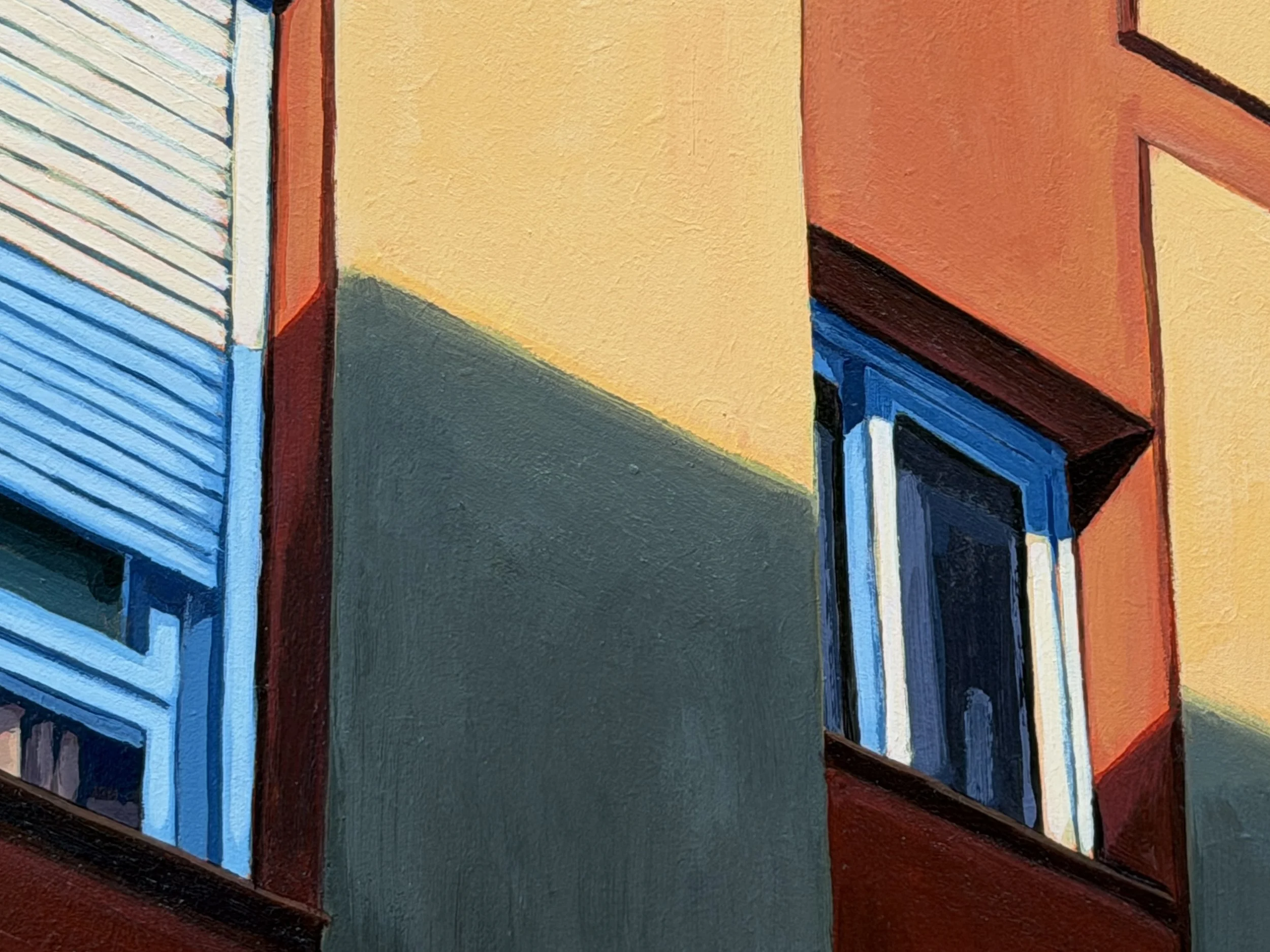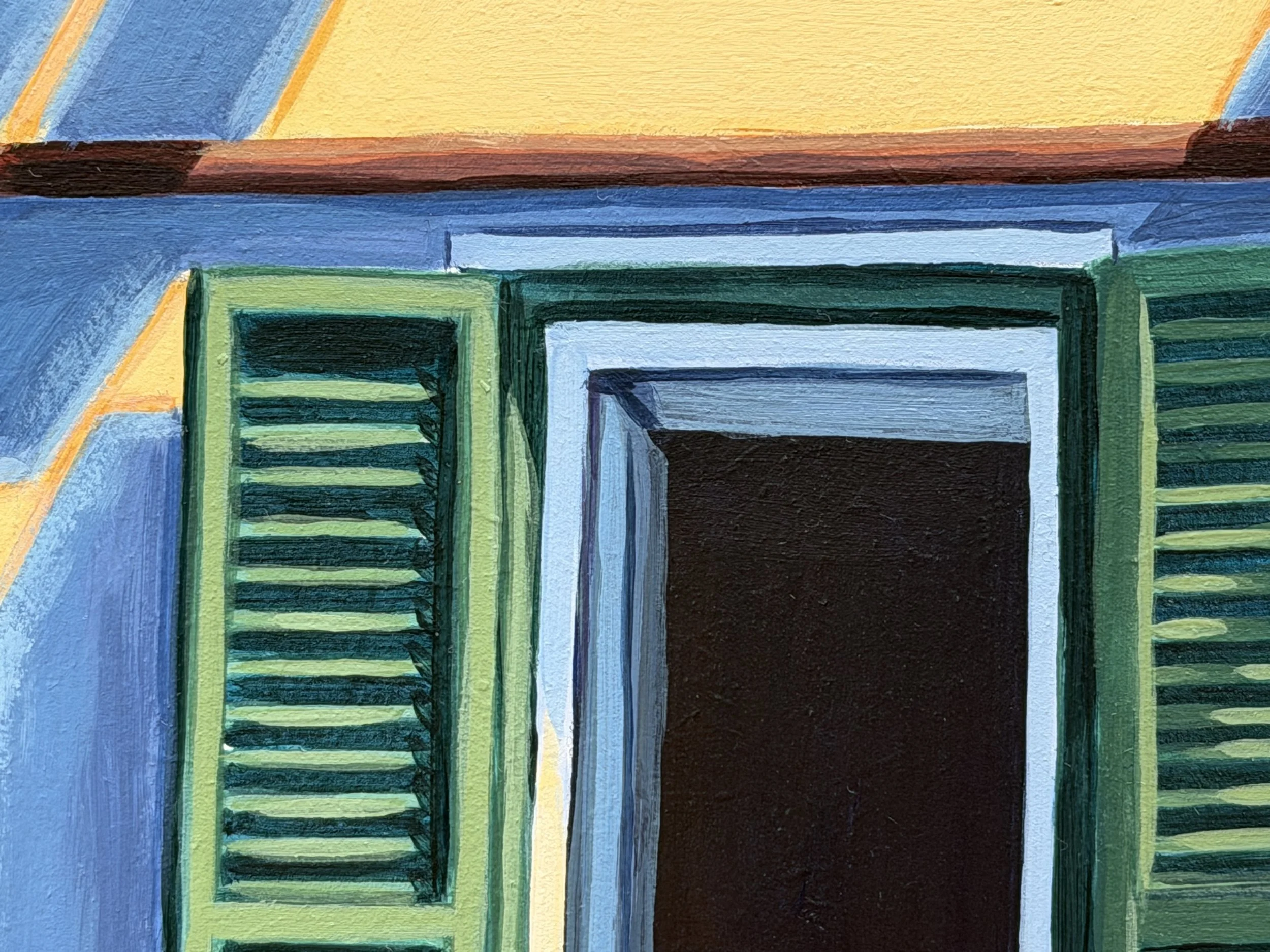 This painting is part of the recently released tile collection ‘La Luz III’. The series consists of 12 small paintings which Monica refers to as ‘tiles’ and captures the striking Mediterranean light and colour in Gibraltar.